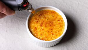 Ако не разполагате с горелка, може да поставите купичките отново във фурната и да ги изпечете отново само на горен реотан при най-висока температура за няколко минути докато захарта се разтопи и карамелизира.
