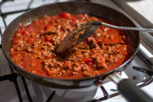 Най-напред си приготвяме соса Болонезе: