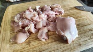 - 2 бр. пилешко филе – 500-600 гр. (може да се ползват и бутчета, както е в случая, но кожата трябва да бъде премахната)