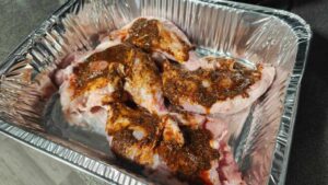 Най-напред започваме с приготвянето на марината. В подходяща купичка слагаме зехтина или олиото и започваме да добавяме сухите подправки. Слагаме на вкус, като трябва да се получи гъста хомогенна смес като кашичка. Ако не можем да преценим солта, можем да я оставим и да осолим месото отделно. Към всичко това добавяме и сока от един лимон. Разбъркваме и маринатата ни е готова. Следва да почистим и подредим бутчетата в тавата за печене. Намазваме ги с марината и ги оставяме за около 20-30 минути да поемат подправките.