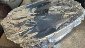 Нивото на течността трябва да е почти наравно с пържолите. Ако е наложително, доливаме още кока-кола. Следва да покрием добре тавичката с фолио за печене, и слагаме във фурната.