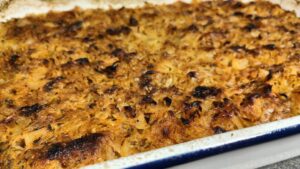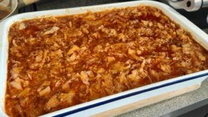 Печем в предварително загрята на 200 градуса фурна за около 40-45 минути, докато ястието леко се запече, и остане почти само на мазнина. Нашето кисело зеле със свинско на фурна е готово.
