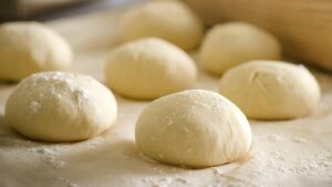 – Оформяне на хлебчетата: След като тестото е втасало, го извждаме на леко набрашнена повърхност. Разделяме го на малки парчета (около 60-70 гр. всяко) и оформяме малки топки.