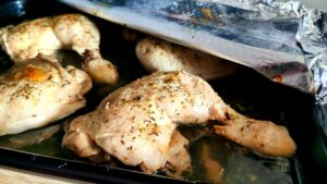 Тъй като сме фокосирани върху глазурата, няма да се впускам в подробности относно самото печене. Ще спомена само, че аз пека пилешките бутчета (както е в случая) под фолио. Бавното печене под фолио, дава винаги отлични резултати. Пека на предварително загрята фурна на 180-190 градуса за около половин час, после изваждам, отмятам фолиото, обръщам бутчетата и пека за още половин час.