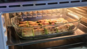 Запичаме във предварително загрята на 190-200 градуса фурна, за около 10-15 минути и нашите рулца от тиквички са вече готови. Можем да ги сервираме, както за предястие, така и за основно. Добър апетит!