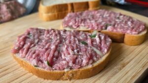 Пържени филийки с кайма – бърза, лесна и вкусна закуска. Щом ми дойде на ум идеята да направя „принцеси“ или „странджанки“, само че на тиган, очаквах нещо вкусно. Получи се нещо страхотно! В рецептата няма нищо сложно и който е правил пържени филийки едва ли ще го затрудни.