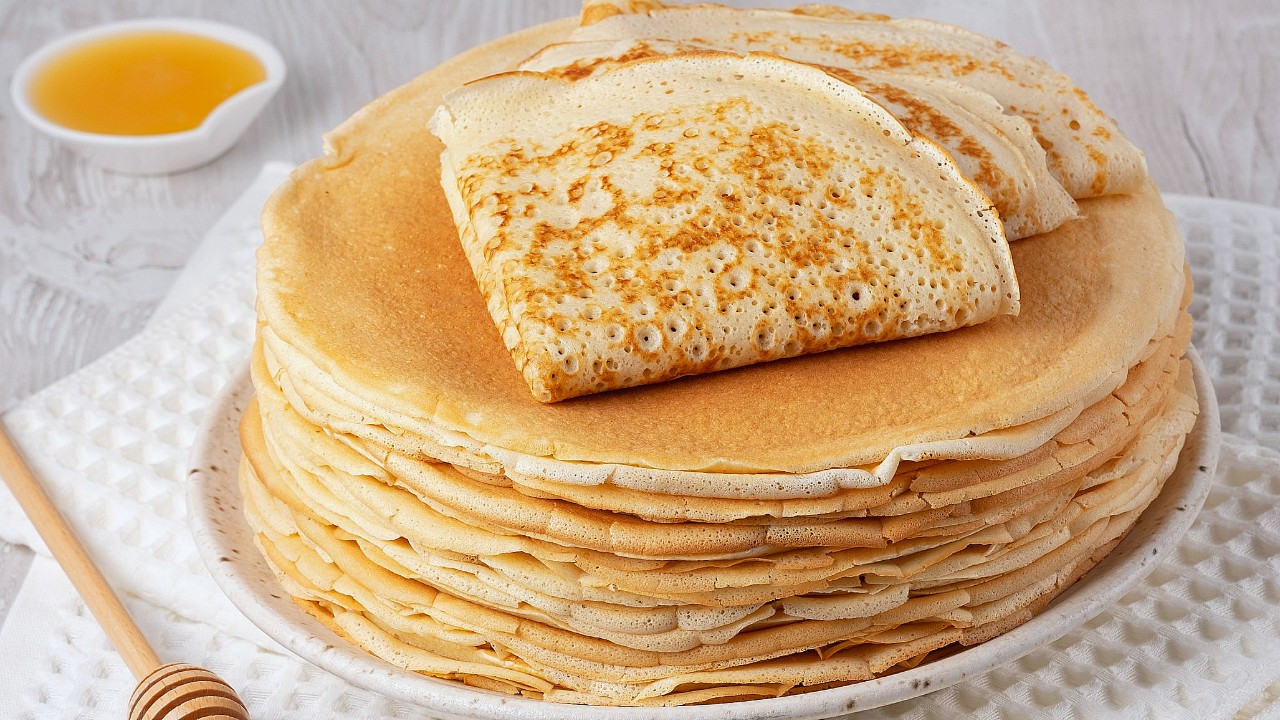 Руски палачинки (блинчики). Тънки и нежни, много еластични, подходящи за всякакъв пълнеж. Рецептата е проста, а палачинките се правят много бързо и лесно!
