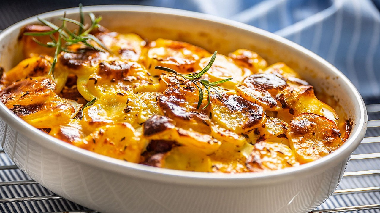Картофен гратен с прясно мляко – бързо ястие с превъзходен вкус. Лесно за приготвяне и с малко продукти.